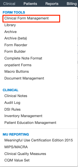 1. Go to Clinical > Form Tools > Clinical Form Management.
