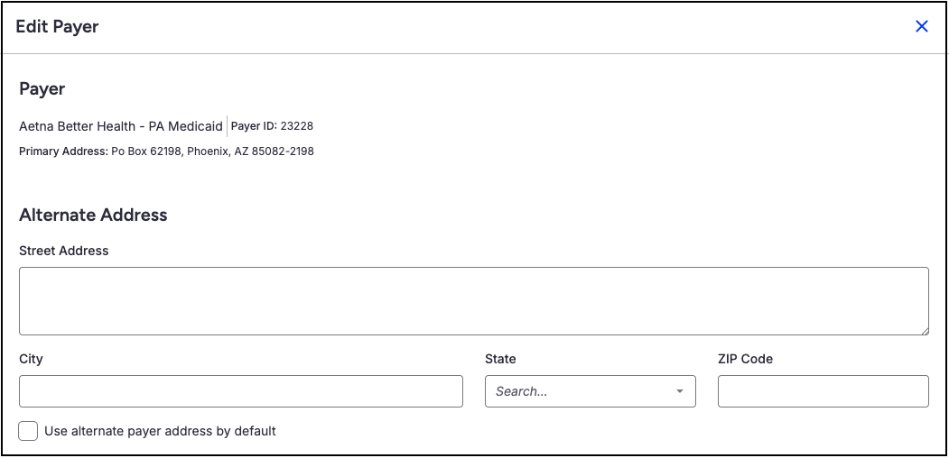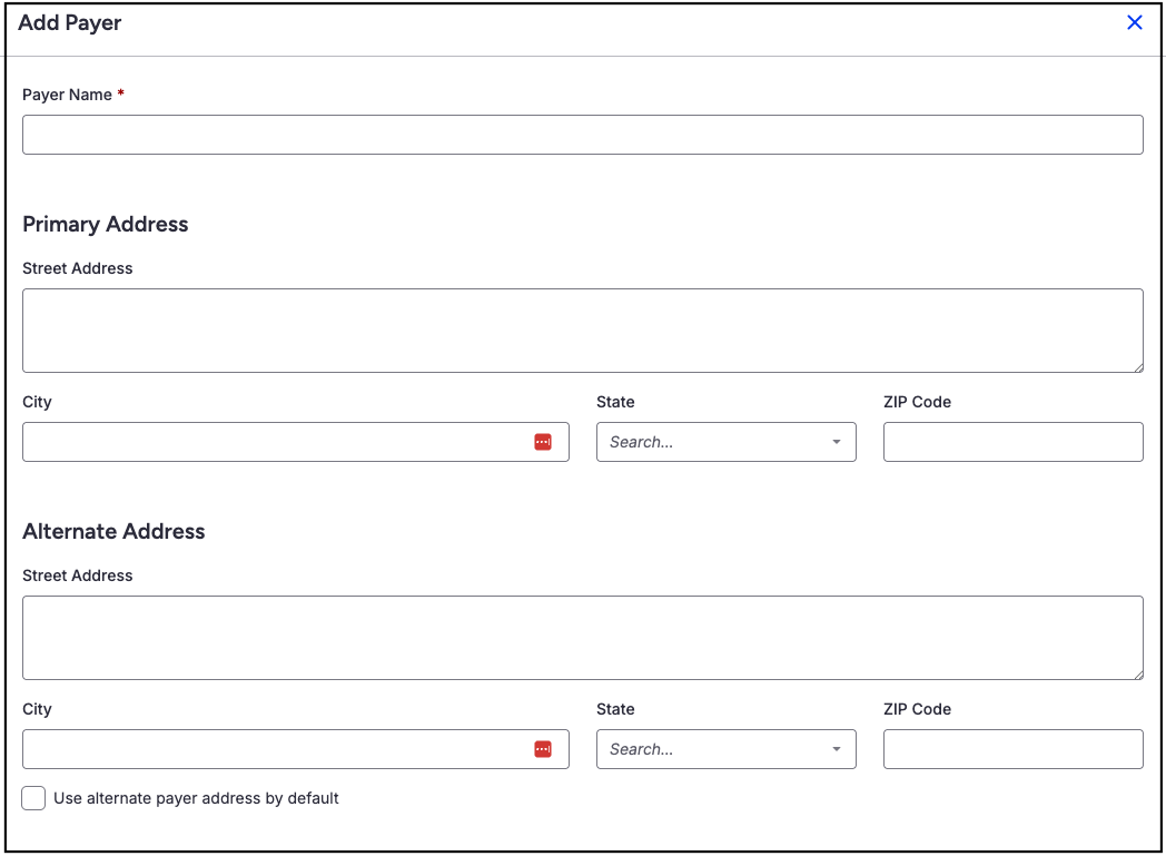 - An alternate address can be added for the payer. To make the address the default, check the box under City.