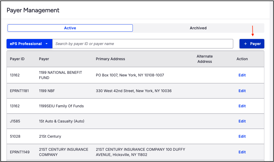 In DrChrono, you can add a payer or change the payer address, if needed.