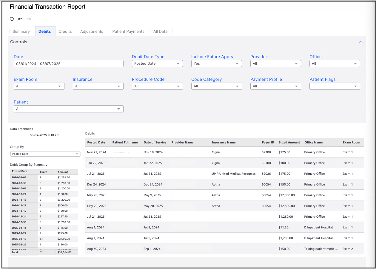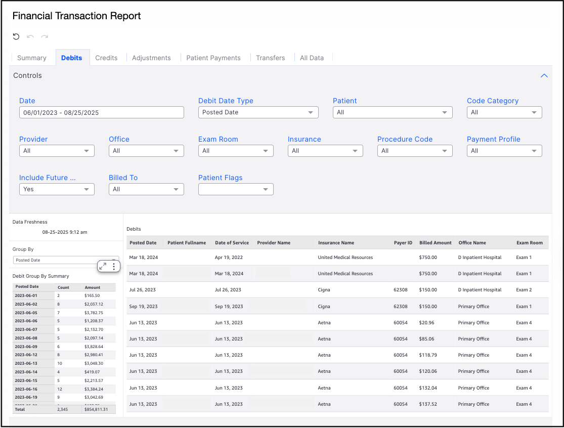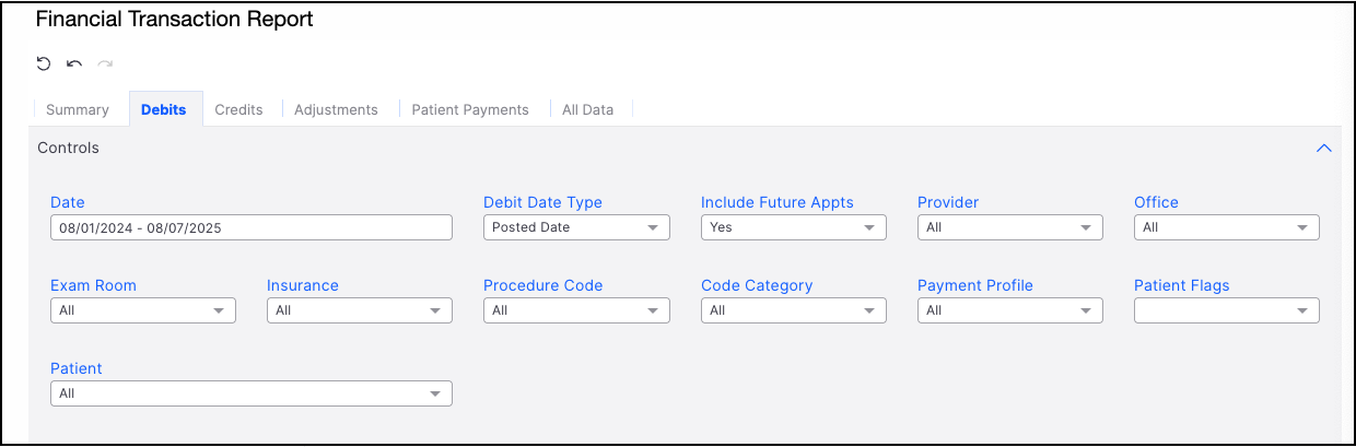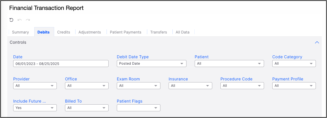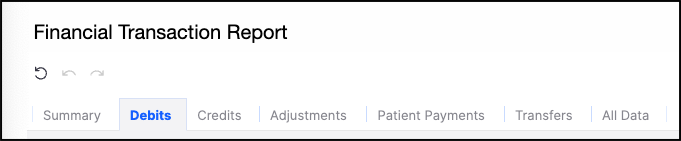 The second tab listed under the Day Sheet is the Debits tab. Here, you can view the charges added for the parameters you set.