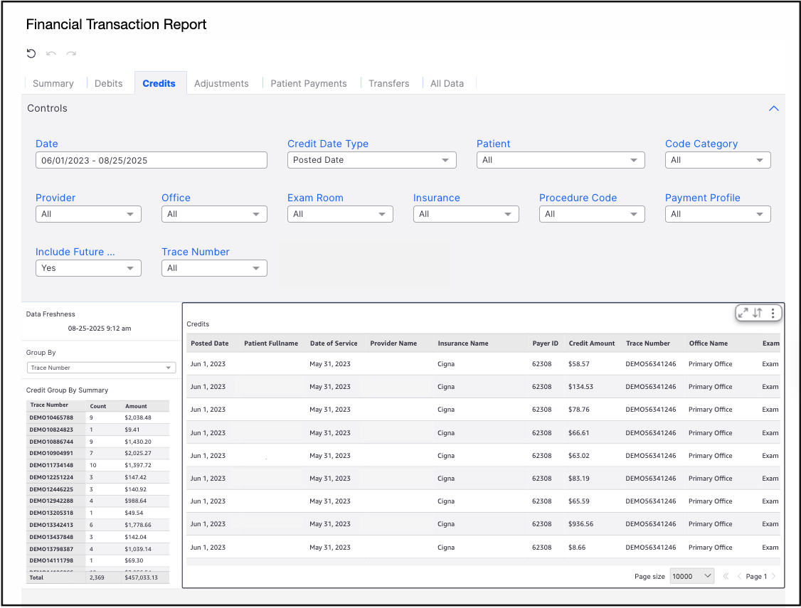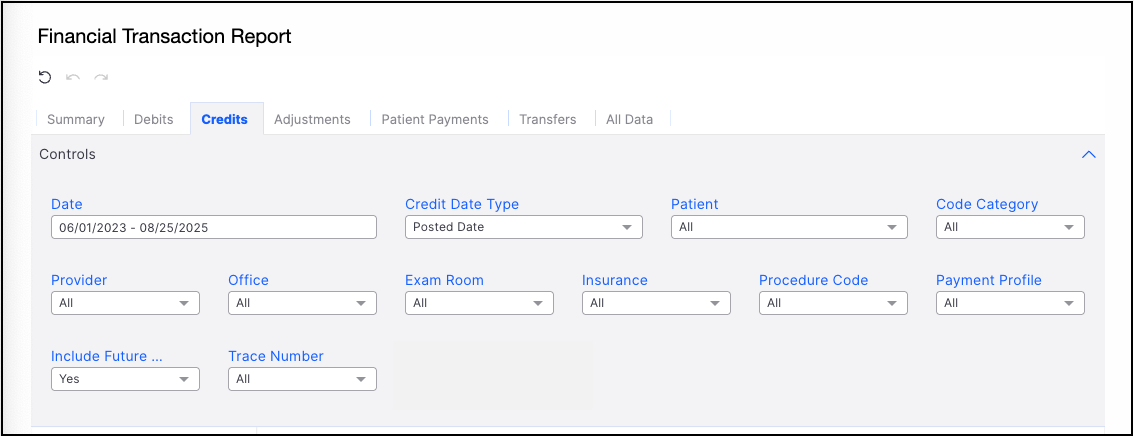 The third tab listed under the Day Sheet is the Credits tab. Here, you can view the payments added for the parameters you set.