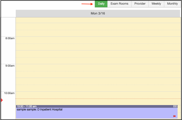 The Daily View on the calendar shows when the patient has paid their copay for the visit by cash, check, or credit card. It is hidden in the weekly and monthly calendar views to reduce visual clutter.