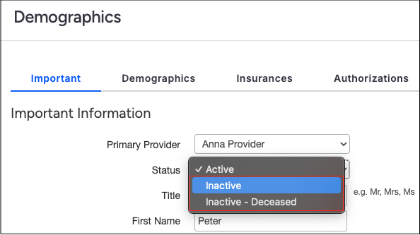 - Patient charts with active or pending claims cannot be changed to inactive or deceased until all claims have been processed.