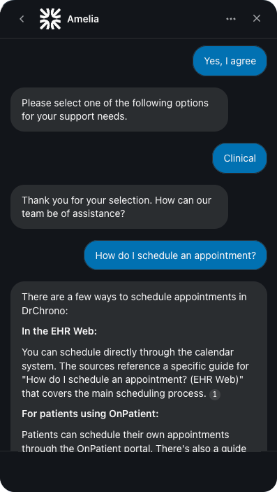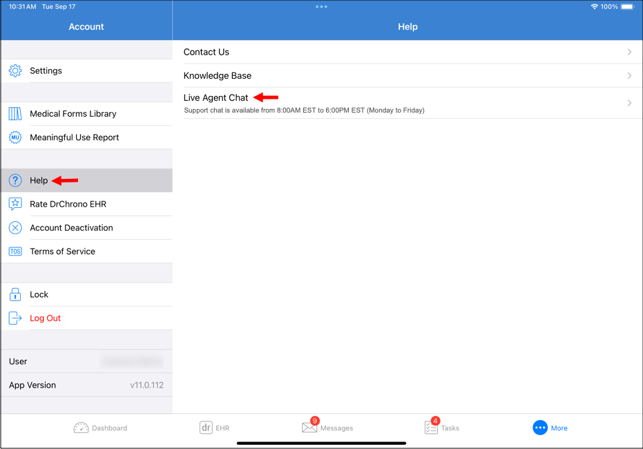 Support chat in the DrChrono web application | Support chat in the DrChrono mobile app