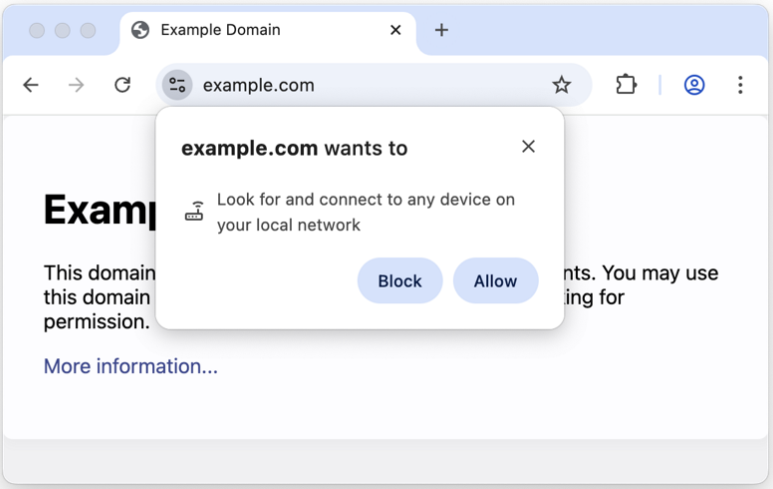 If the browser message doesn't prompt you again, you may need to clear the site permission for local network access.