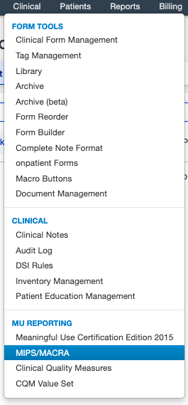 You can access your PI dashboard in your DrChrono account by going to Clinical > MIPS/MACRA