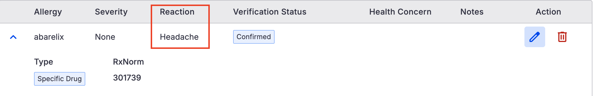 Users will see new or updated fields when recording allergies and intolerances. These changes are designed to make allergy documentation more thorough and standardized.