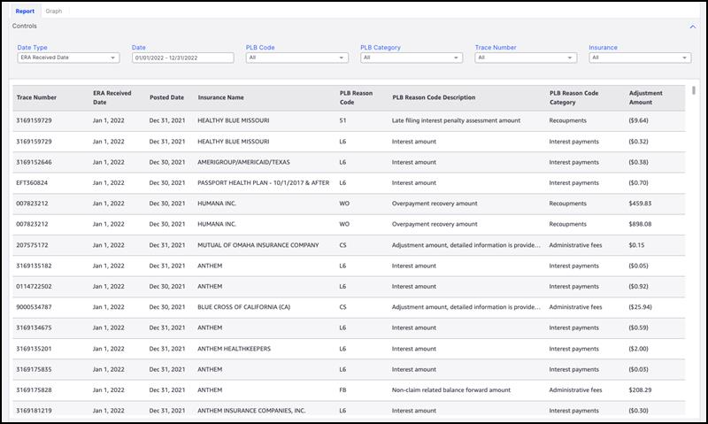 - PLB Code - Select a single, multiple, or all PLB Adjustment Codes