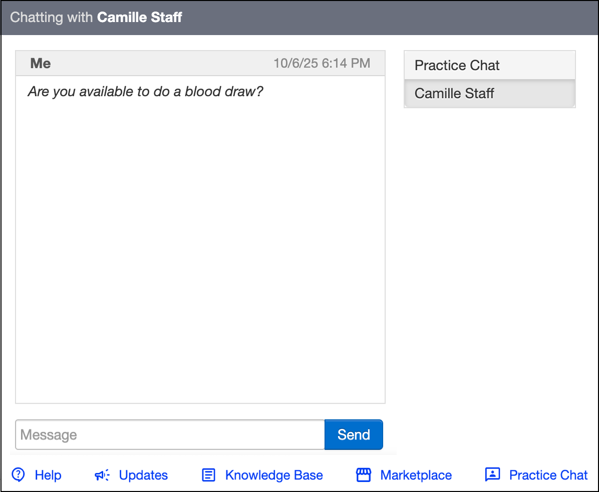 - Select Practice Chat and reply to the message. All messages remain in the chat for later viewing.