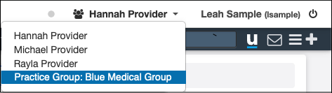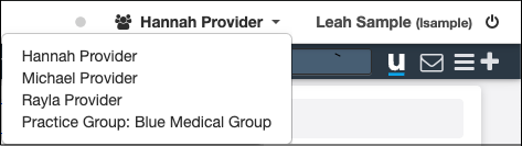 Another useful, but not required, permission that can be helpful in multi-provider practice groups is Provider Dropdown, which allows users to access multiple providers in the practice. When this permission is turned on, multiple providers appear in the dropdown.