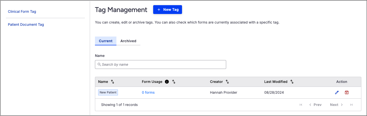 Manage clinical form and patient document tags.