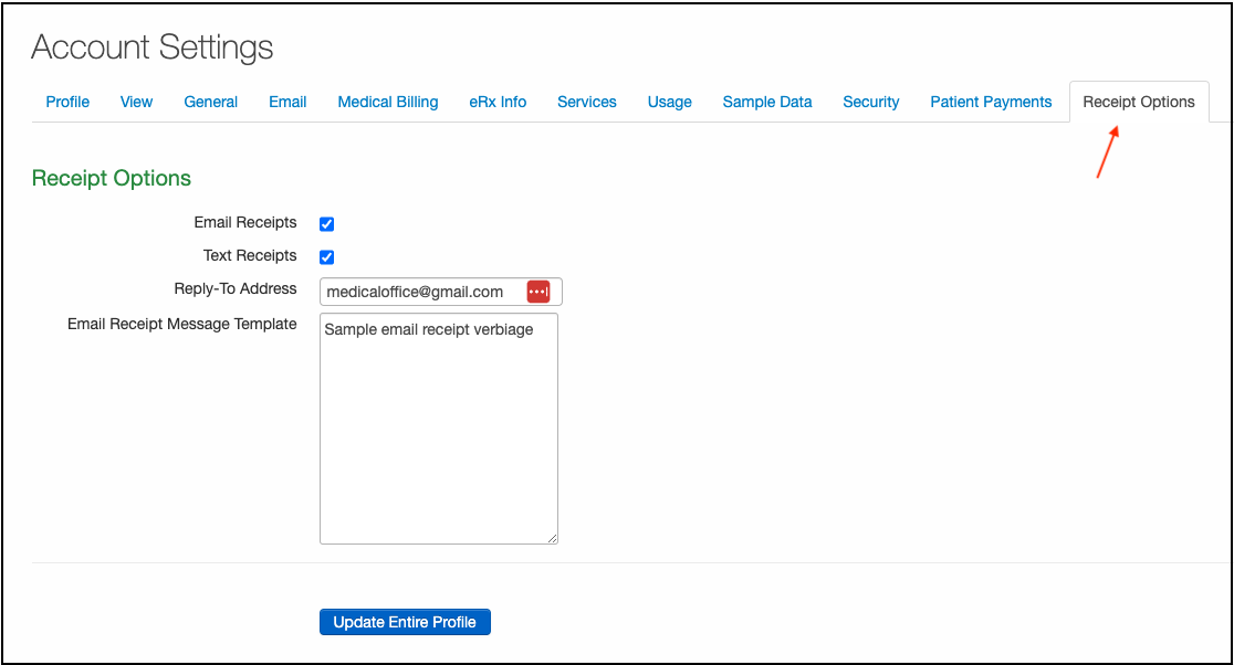 - Navigate to Billing > Provider Settings > Receipt Options