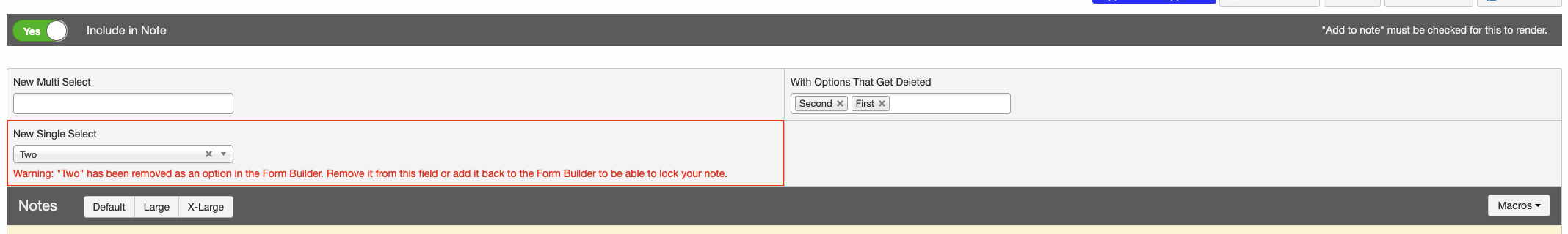 Clinical notes now only display information for fields that have valid, selected values. If a previously used value is no longer available, it will be clearly highlighted with a warning, and users must resolve the issue before signing and locking the note, helping ensure notes are accurate and complete.