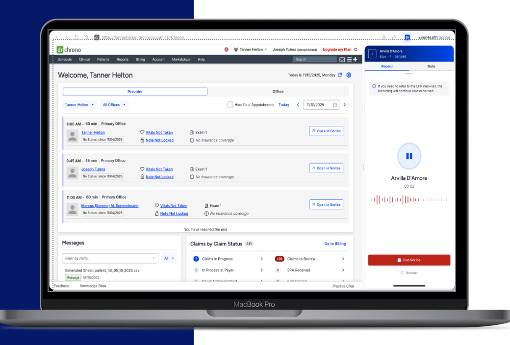 - Less documentation time: Ambient Scribe listens during visits and automatically generates a complete clinical note.