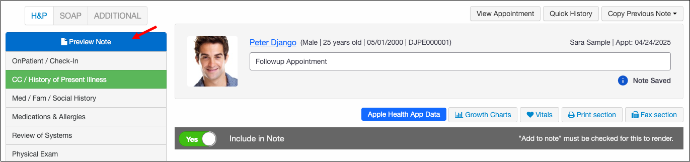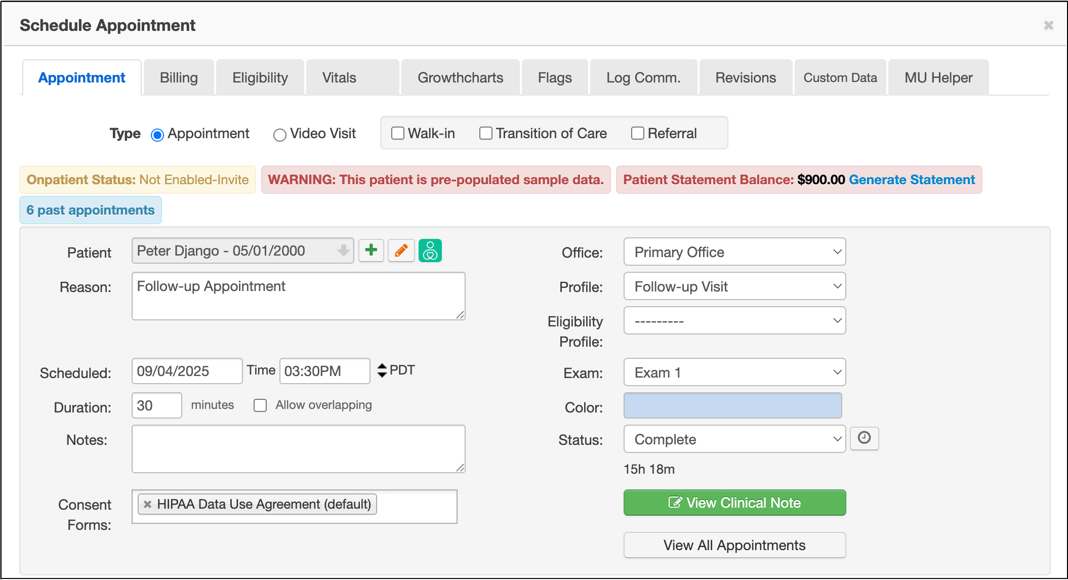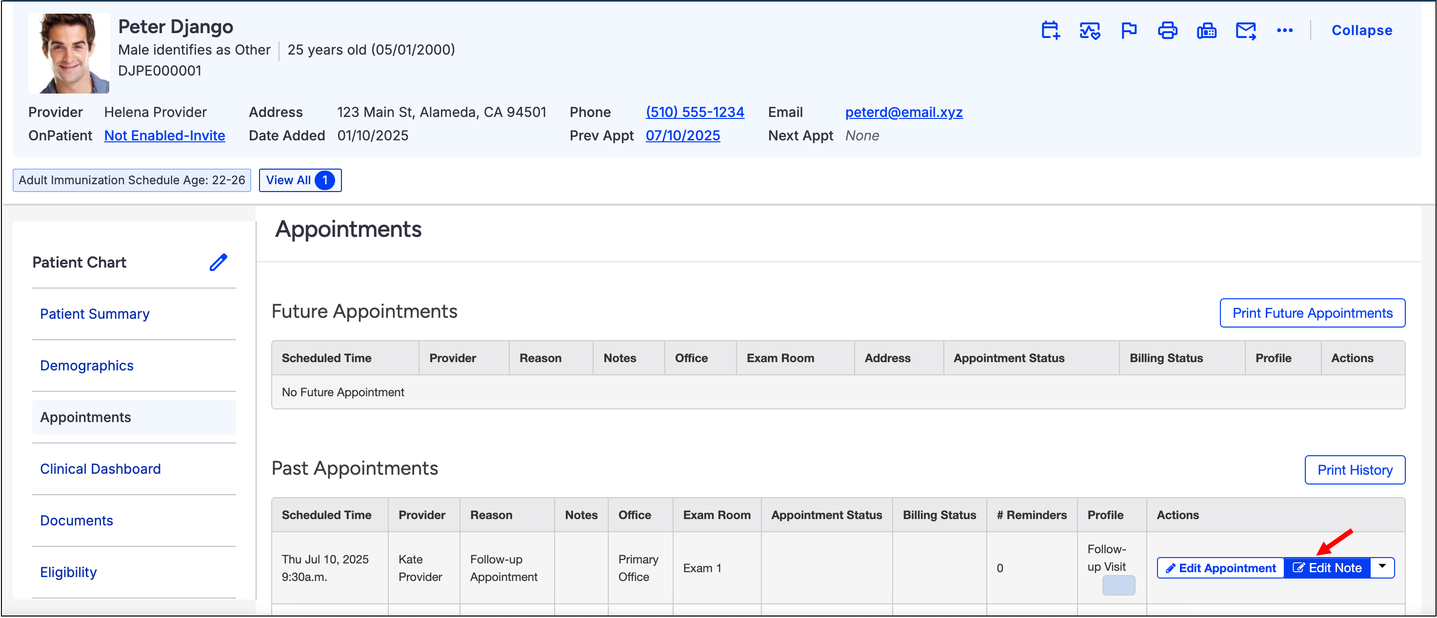 - From the patient's chart sidebar, select Appointments and then Edit Note (for the specific appointment)