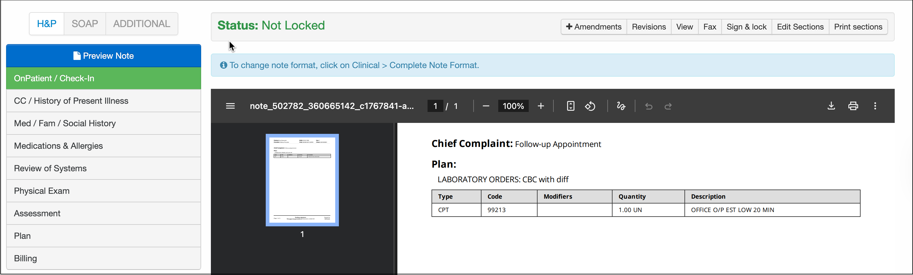 After the note is signed and locked, the e-signature of the rendering provider appears with a date/timestamp.
