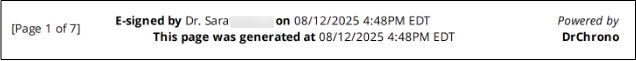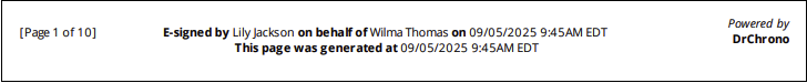 E-signed by [user who locked the note] on behalf of [provider the patient had the appointment with] on [date/timestamp]