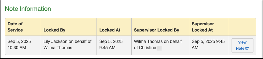 The Supervisor Locked By user is the [user who locked the note] on behalf of [supervising provider assigned to the appointment].